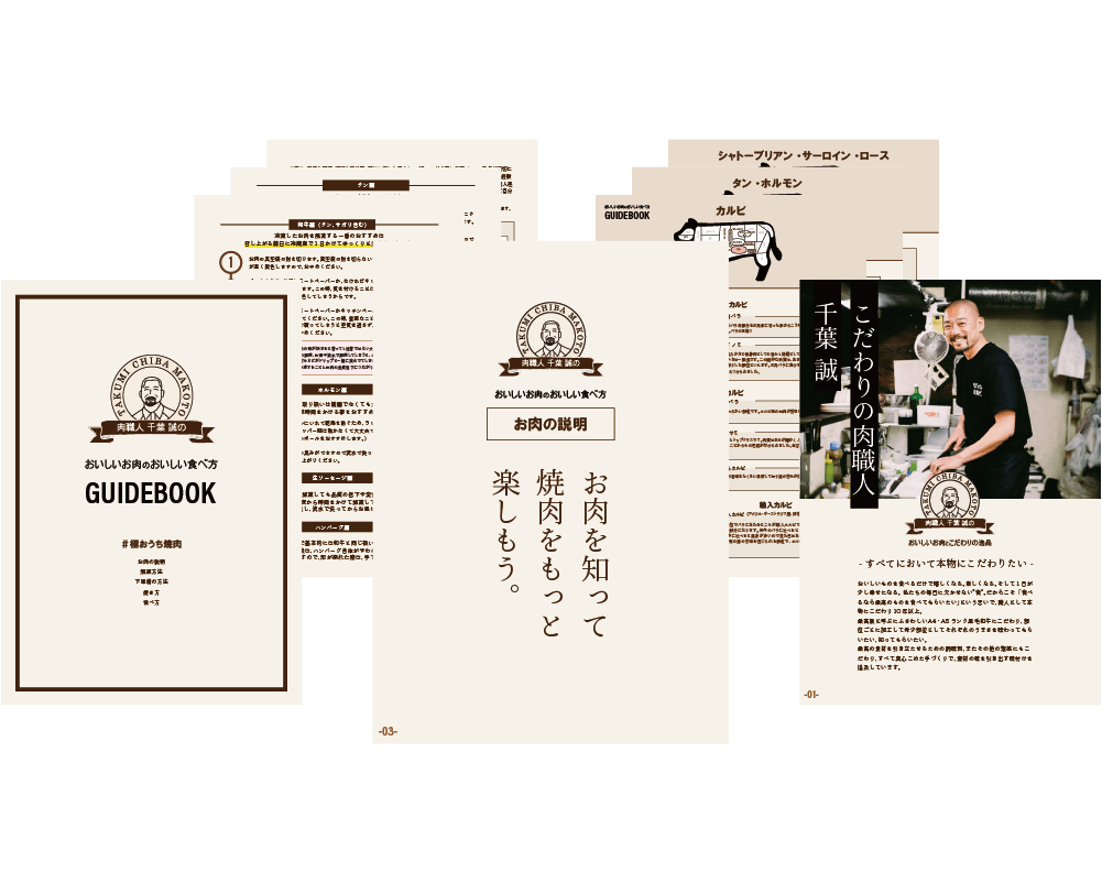 お店の味を楽しんでいただきたい。お肉箱をご購入いただいた方に、無料で電子書籍のお肉のガイドブックをプレゼントしております。